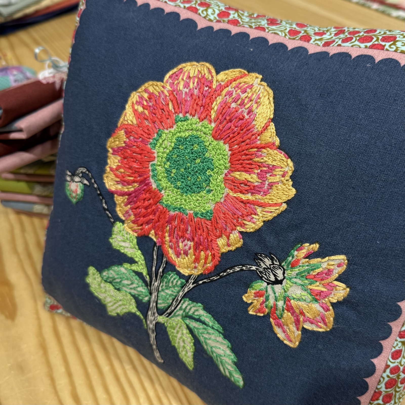 If you've taken our Beginning Hand Embroidery Class or have previous hand embroidery experience, this is a great next step! You will be embellishing this lovely linen floral fabric designed by Anna Maria Horner and in class you will see a couple different options for what you can make with your embroidered piece.